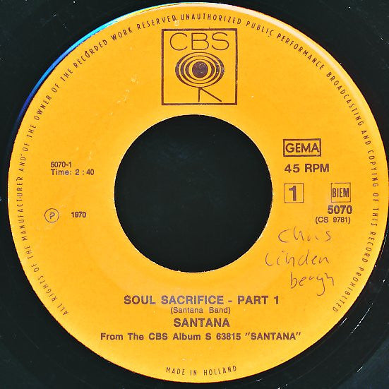 From the CBS Album: "Santana" - S 63815