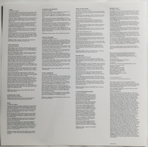 A1. Laura A2. Take Your Mama A3. Comfortably Numb A4. Mary A5. Lovers In The Backseat B1. Tits On The Radio B2. Filthy/Gorgeous B3. Music Is The Victim B4. Better Luck B5. It Can't Come Quickly Enough B6. Return To Oz