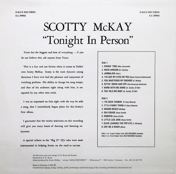 A1. Evenin' Time A2. Mess Around A3. Jambalaya A4. I've Got My Eyes On You A5. You Shattered My Dreams A6. Sittin' Down And Cry A7. Work With Me Annie A8. You Told Me Baby B1. I've Been Thinkin' B2. It's A Funny Thing B3. Waikiki Beach B4. Sea Cruise B5. Roberta B6. Little Liza Jane B7. Olive Learned The Pop-Eye B8. Cry Me A River