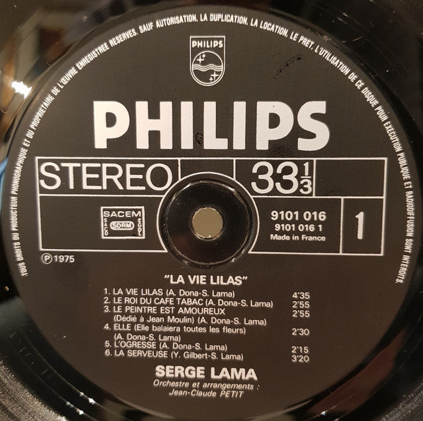 A1. La Vie Lilas 4:35 A2. Le Roi Du Café-Tabac 2:55 A3. Le Peintre Est Amoureux (Dédié À Jean Moulin) 2:55 A4. Elle (Elle Balaiera Toutes Les Fleurs) 2:30 A5. L'ogresse 2:15 A6. La Serveuse 3:20 B1. Dans Ma Garçonnière 2:20 B2. Les Ports De L'Atlantique 2:35 B3. Le Bohémien 2:40 B4. Dimanches En Italie 3:30 B5. Je T'aime À La Folie 2:55 B6. Où Vont Tous Ces Bateaux 3:15