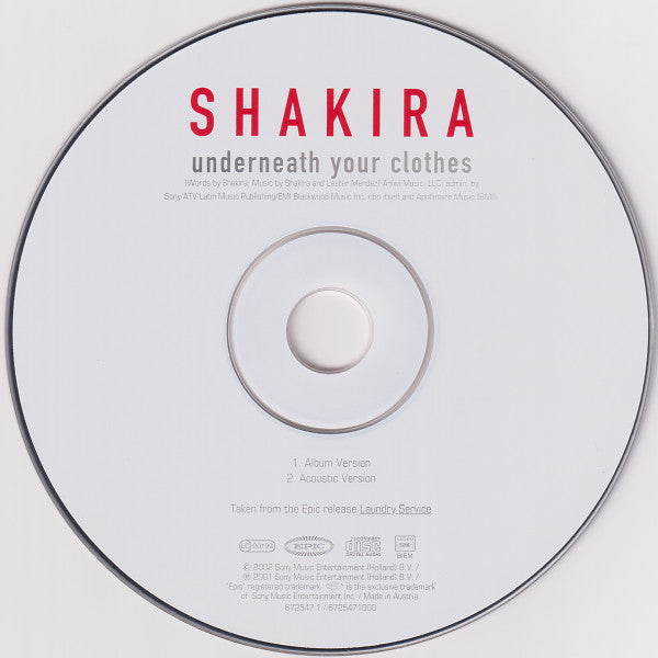1. Underneath Your Clothes (Album Version) 3:442. Underneath Your Clothes (Acoustic Version) 3:55