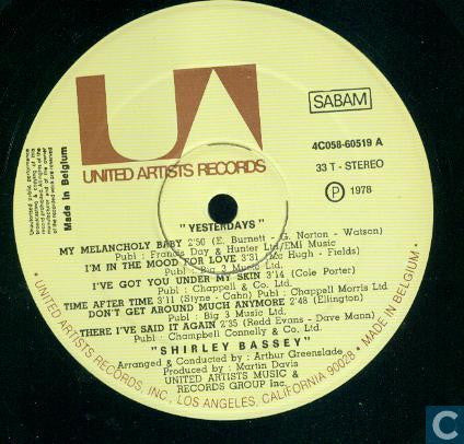 Record Company EMI Belgium Copyright (c) United Artists Music And Records Group, Inc. Mastered At United Artists Recording Studio Phonographic Copyright (p) United Artists Music And Records Group, Inc.