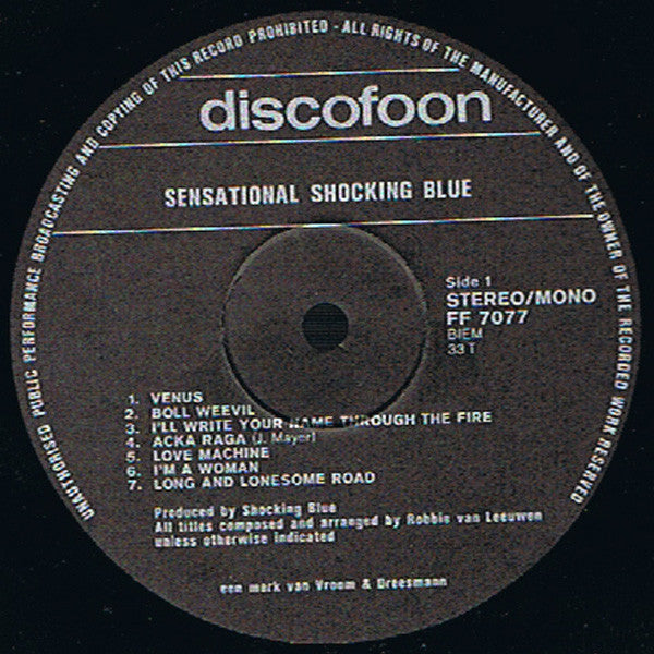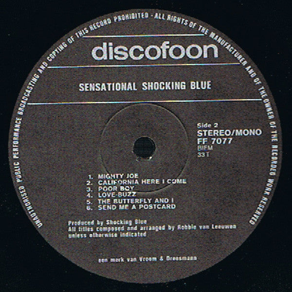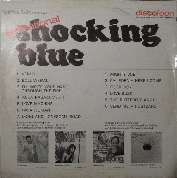 A1. Venus A2. Boll Weevil A3. I'll Write Your Name Through The Fire A4. Acka Raga A5. Love Machine A6. I'm A Woman A7. Long And Lonesome Road B1. Mighty Joe B2. California Here I Come B3. Poor Boy B4. Love-Buzz B5. The Butterfly And I B6. Send Me A Postcard