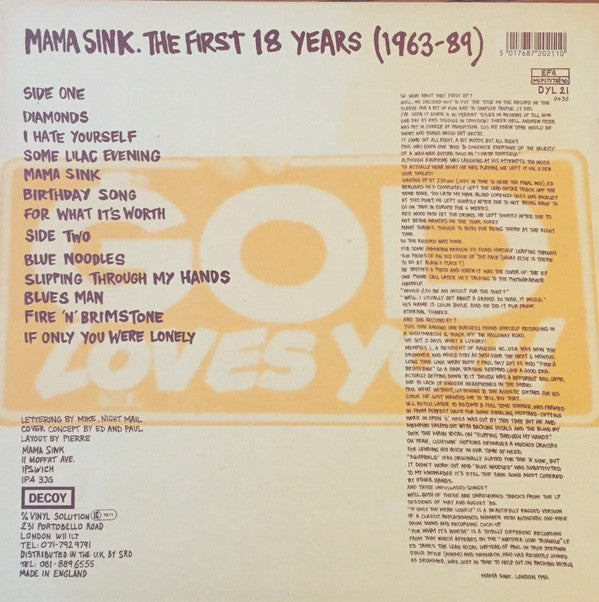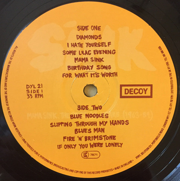 A1. Diamonds A2. I Hate Yourself A3. Some Lilac Evening A4. Mama Sink A5. Birthday Song A6. For What It`s Worth B1. Blue Noodles B2. Slipping Through My Hands B3. Blues Man B4. Fire 'N' Brimstone B5. If Only You Were Lonely
