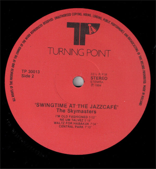 On the front cover the "AVRO" logo is displayed. The AVRO is the Dutch broadcasting company who organized and made radio sessions with the Sky Masters at Nick Vollebregt's Jazz Cafe on a weekly basis from 1978 untill 1986. The Skymasters were in fact an AVRO radio orchestra from 1946 untill 1997.
