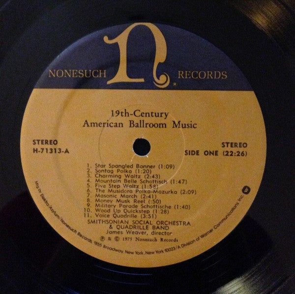 Smithsonian Social Orchestra & Quadrille Band - 19th Century American Ballroom Music: Waltzes, Marches, Polkas & Other Dances (LP)