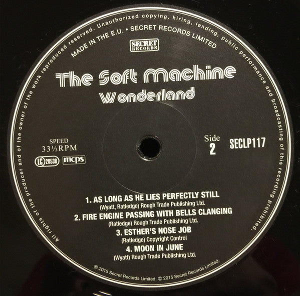 Limited EditionLP (500 copies) of Soft Machine tracks from 1967, featuring Mike Ratledge, Kevin Ayers, Robert Wyatt and Daevid Allen on side one, and from 1969/70 featuring Mike Ratledge, Robert Wyatt, Hugh Hopper and Elton Dean on side two.