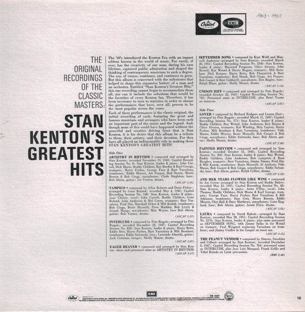 A1. Artistry In Rhythm 3:16 A2. Tampico 2:37 A3. Interlude 3:07 A4. Eager Beaver 3:17 A5. September Song 3:14 A6. Unison Riff 3:07 B1. Lover 2:40 B2. Painted Rhythm 2:52 B3. And Her Tears Flowed Like Wine 3:05 B4. Laura 3:15 B5. The Peanut Vendor 2:40