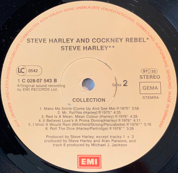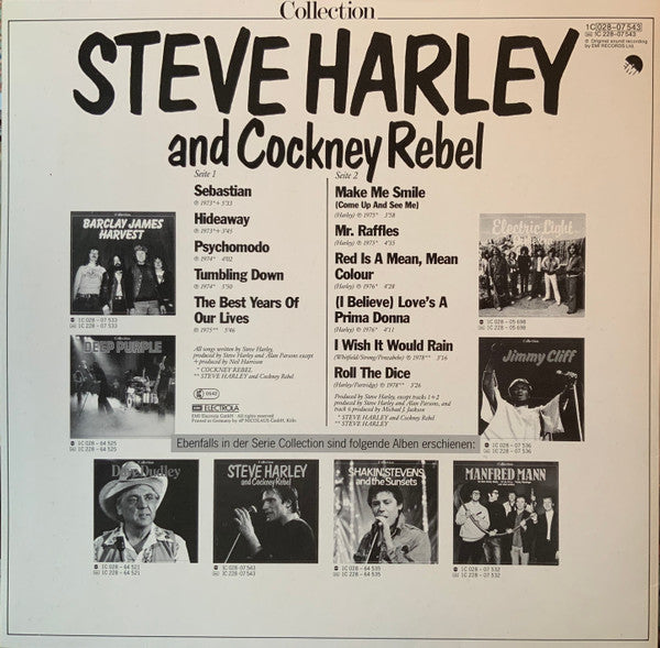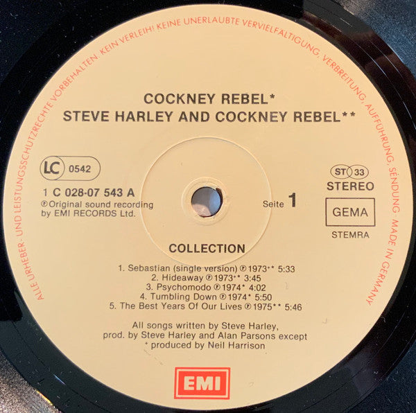 A1. Cockney Rebel - Sebastian (Single Version) 5:33 A2. Cockney Rebel - Hideaway 3:45 A3. Cockney Rebel - Psychomodo 4:02 A4. Cockney Rebel - Tumblin' Down 5:50 A5. Steve Harley & Cockney Rebel - The Best Years Of Our Lives 5:46 B1. Steve Harley & Cockney Rebel - Make Me Smile (Come Up And See Me) 3:58 B2. Steve Harley & Cockney Rebel - Mr. Raffles 4:35 B3. Steve Harley & Cockney Rebel - Red Is A Mean, Mean Colour 4:28 B4. Steve Harley & Cockney Rebel - (I Believe) Love's A Prima Donna 4:11 B5. Steve Harley - I Wish It Would Rain 3:16 B6. Steve Harley - Roll The Dice 3:26