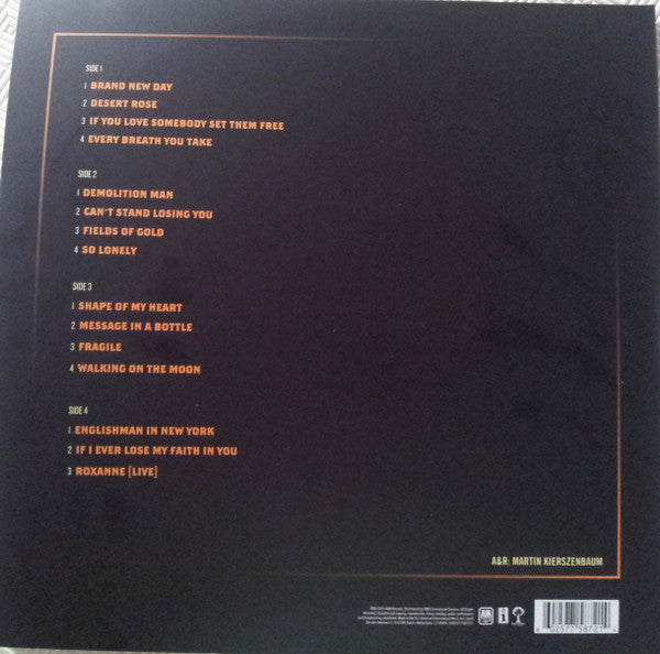 A1. Brand New Day 3:56 A2. Desert Rose 3:56 A3. If You Love Somebody Set Them Free 4:35 A4. Every Breath You Take 4:16 B1. Demolition Man 4:18 B2. Can't Stand Losing You 2:49 B3. Fields Of Gold 3:47 B4. So Lonely 4:09 C1. Shape Of My Heart 4:43 C2. Message In A Bottle 4:46 C3. Fragile 3:52 C4. Walking On The Moon 4:16 D1. English Man In New York 4:28 D2. If I Ever Lose My Faith In You 4:09 D3. Roxanne [Live] 3:05