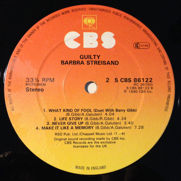 Phonographic Copyright (p) CBS Inc. Copyright (c) CBS Inc. Produced For Barry Gibb Productions Produced For Karlbhy Productions Produced For The Entertainment Company Published By RSO Publishing Ltd. Published By Chappell Music Ltd. Made By Shorewood Packaging Co. Ltd. Recorded At Criteria Recording Studios Recorded At Middle Ear Studio Recorded At Sound Labs, Hollywood Recorded At Mediasound