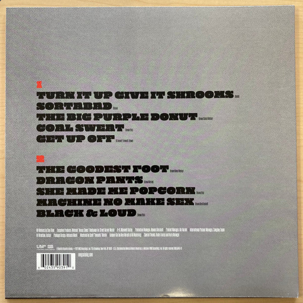 A1. Turn It Up Give It Shrooms A2. Sortabad A3. The Big Purple Donut A4. Coal Sweat A5. Get Up Off B1. The Goodest Foot B2. Dragon Pants B3. She Made Me Popcorn B4. Machine No Make Sex B5. Black & Loud