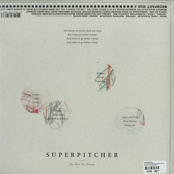 A1. Superpitcher - Jackson A2. Superpitcher - Heroin A3. Superpitcher - Happiness B1. Superpitcher - Voodoo B2. Superpitcher - Grace B3. Quarks - I Walk (Superpitcher Schaffel Mix) C1. Superpitcher - People C2. Superpitcher - Mushroom C3. Superpitcher - Rabbits In A Hurry D1. Superpitcher - Baby's On Fire D2. Superpitcher - More Heroin D3. Superpitcher - Tomorrow