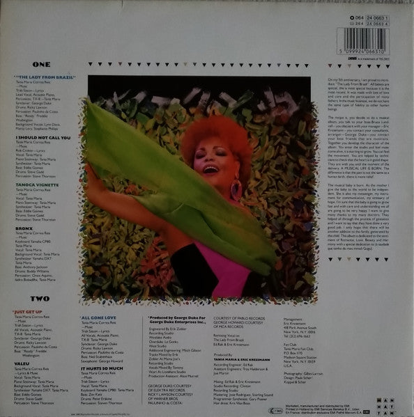 A1. The Lady From Brazil 5:55 A2. I Should Not Call You 4:19 A3. Tanoca Vignette 3:11 A4. Bronx 5:48 B1. Just Get Up 4:05 B2. Valeu 5:45 B3. All Gone Love 4:58 B4. It Hurts So Much 4:44