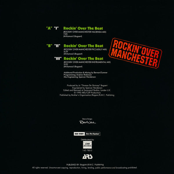 A. Rockin' Over The Beat (Rockin' Over Manchester Hacienda Mix) 7:05B1. Rockin' Over The Beat (Rockin' Over Manchester Piccadilly Mix) 6:29B2. Rockin' Over The Beat (Rockin' Over Manchester Instrumental Mix) 5:55