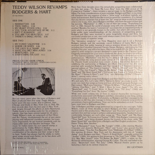 A1. Manhattan 3:28 A2. Thou Swell 2:34 A3. My Heart Stood Still 2:52 A4. You Took Advantage Of Me 3:11 A5. Isn't It Romantic 3:07 A6. You Are Too Beautiful 3:57 A7. There's A Small Hotel 3:06 B1. My Funny Valentine 3:15 B2. Where Or When 4:06 B3. The Lady Is A Tramp 2:26 B4. Have You Met Miss Jones 3:38 B5. Bewitched 3:24 B6. Everything I've Got 4:11