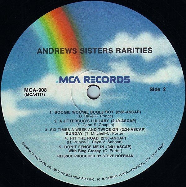 Early Andrews Sisters songs from movie pictures, unissued records, and from alternate takes of previously issued recordings. These performances were transferred from the original Decca 78 RPM Metal Parts and 33 1/3 RPM 16" Glass Transcriptions.