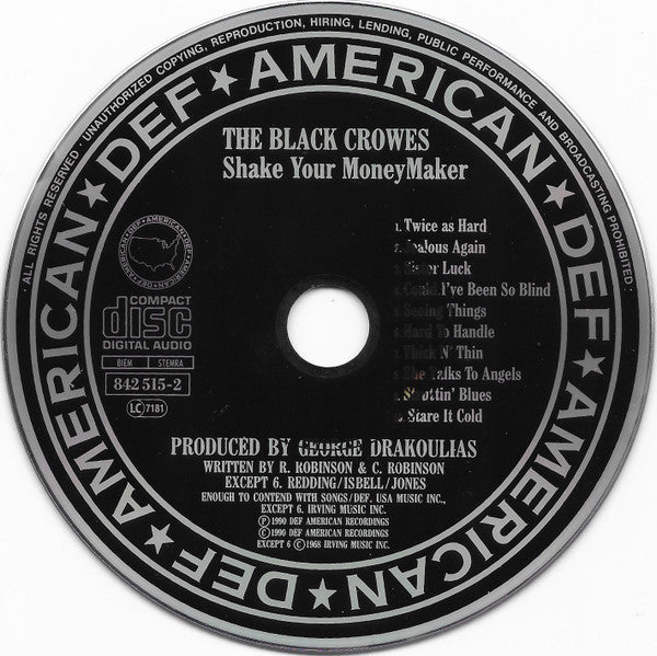 Title appears as "The Black Crowes" with "Present: $hake Your Money Maker" on the last booklet page and inlay.