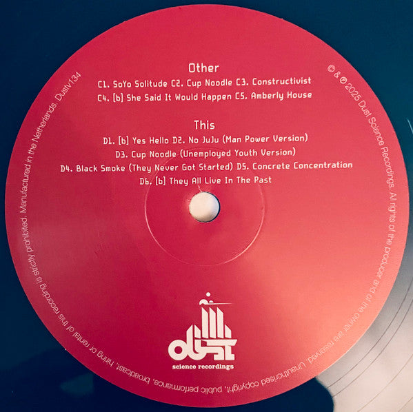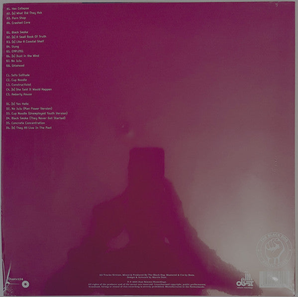 A1. Hex Collapse A2. (b) What Did They Ask A3. Porn Shop A4. Crashed Core B1. Black Smoke B2. (b) A Small Book Of Truth B3. (b) Like A Coastal Shelf B4. Slung B5. EMP:1951 B6. (b) Dust In The Wind B7. No JuJu B8. Ghiahead C1. SoYo Solitude C2. Cup Noodle C3. Constructivist C4. (b) She Said It Would Happen C5. Amberly Hous D1. (b) Yes Hello D2. No JuJu (Man Power Version) D3. Cup Noodle (Unemployed Youth Version) D4. Black Smoke (They Never Got Started) D5. Concrete Concentration D6. (b) They All Live In The Past