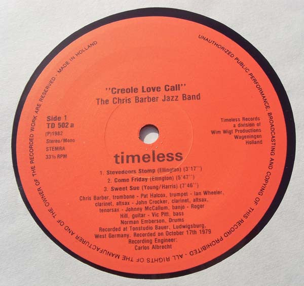 Phonographic Copyright (p) Timeless Records (3) Copyright (c) Timeless Records (3) Record Company Wim Wigt Productions Printed By HBC B.V. Recorded At Tonstudio Bauer Lacquer Cut At Dureco Studio