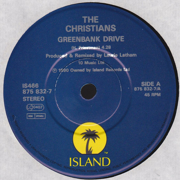 Phonographic Copyright (p) Island Records Ltd. Copyright (c) Island Records Ltd. Published By 10 Music Ltd. Published By Copyright Control Pressed By EMI Records Lacquer Cut At The Town House
