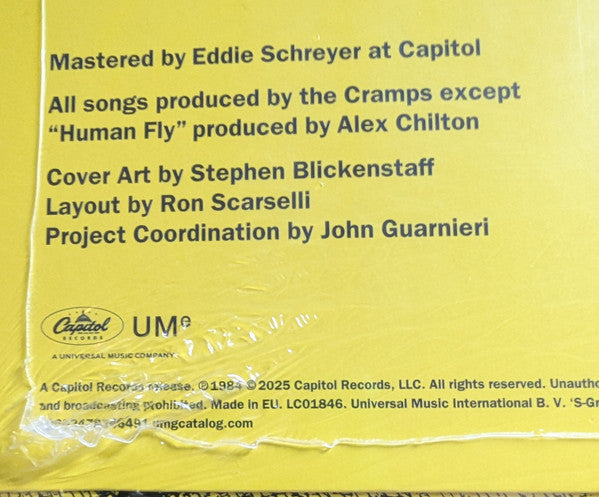 Hype sticker reads: "Compilation of stand-out songs by The Cramps. Includes 'Goo Goo Muck' and 'Human Fly'. On black vinyl. 602478346491"
