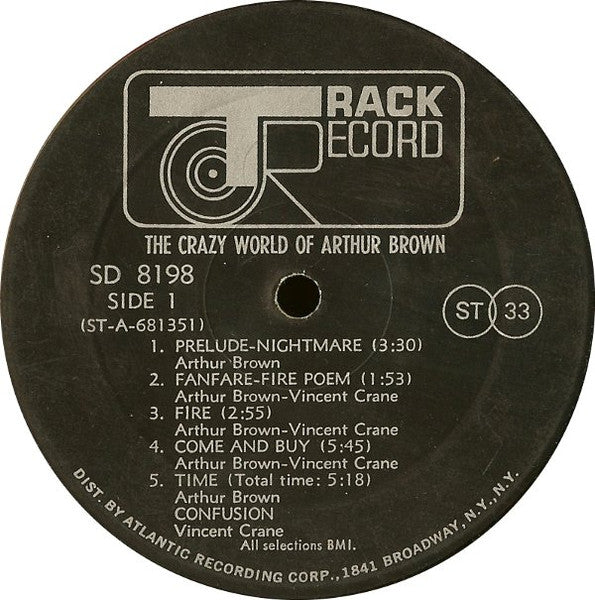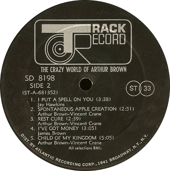 A1. Prelude-Nightmare 3:30 A2. Fanfare-Fire Poem 1:53 A3. Fire 2:55 A4. Come And Buy 5:45 A5a. Time 5:18 A5b. Confusion B1. I Put A Spell On You 3:38 B2. Spontaneous Apple Creation 2:51 B3. Rest Cure 2:39 B4. I've Got Money 3:05 B5. Child Of My Kingdom 5:05