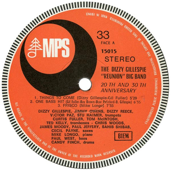 A1. Things To Come 5:29 A2. One Bass Hit 6:35 A3. Frisco 7:55 B1. Con Alma 10:15 B2. The Things Are Here 7:40 B3. Theme 1:40