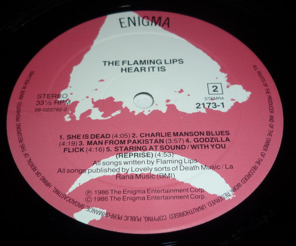 Made in Holland. Printed in the EEC. Initial copies including large b&w poster.