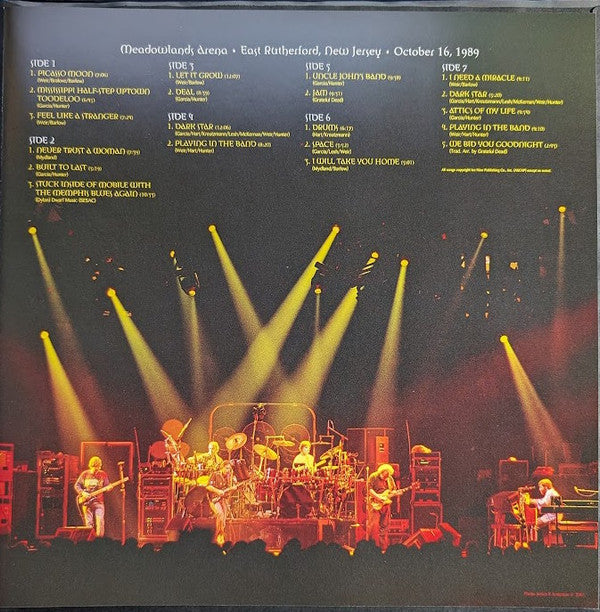 A1. Picasso Moon 7:06 A2. Mississippi Half-Step Uptown Toodeloo 6:45 A3. Feel Like a Stranger 7:24 B1. Never Trust a Woman 7:39 B2. Built to Last 5:19 B3. Stuck Inside of Mobile with the Memphis Blues Again 10:33 C1. Let It Grow > 12:07 C2. Deal 8:39 D1. Dark Star > 12:06 D2. Playing in the Band 8:20 E1. Uncle John's Band > 9:38 E2. Jam 9:31 F1. Drums > 6:17 F2. Space > 5:52 F3. I Will Take You Home 5:01 G1. I Need a Miracle > 4:11 G2. Dark Star > 5:20 G3. Attics of My Life > 4:54 G4. Playing in the Band 4:10 G5. We Bid You Goodnight 2:43