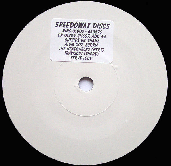 Folded paper/flap sleeve with stamped inner, lyric sheet for the tracks by The Headchecks and some also with a 'button' insert.