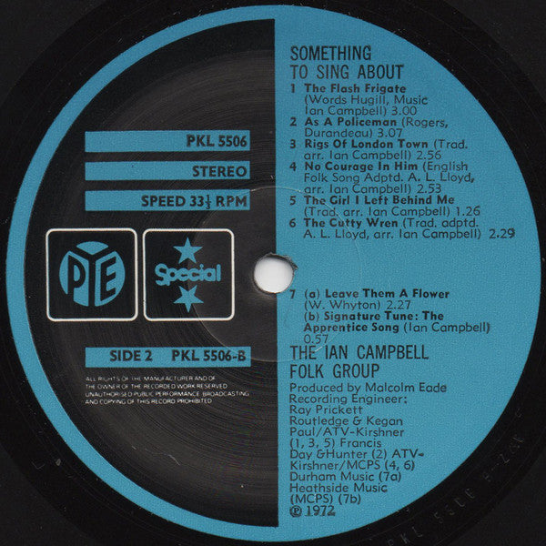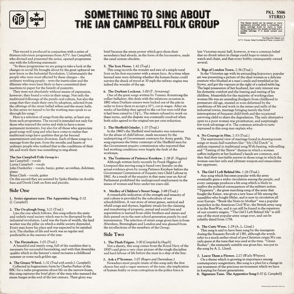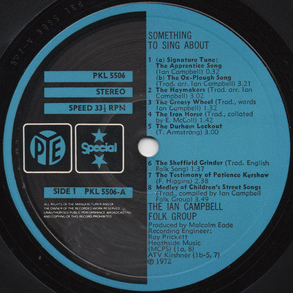 A1. Series Signature Tune. The Apprentice Song 0:32 A2. The Ox-plough Song 3:21 A3. The Haymakers 3:02 A4. The Greasy Wheel 1:32 A5. The Iron Horse 1:42 A6. The Durham Lockout 3:00 A7. The Sheffield Grinder 1:37 A8. The Testimony Of Patience Kershaw 2:38 A9. Medley Of Children's Street Songs 3:49 B1. The Flash Frigate 3:00 B2. Ask A P'liceman 3:07 B3. Rigs Of London Town 2:56 B4. No Courage In Him 2:53 B5. The Girl I Left Behind Me 1:26 B6. The Cutty Wren 2:29 B7. Leave Them A Flower 2:27 B8. Signature Tune. The Apprentice Song 0:57