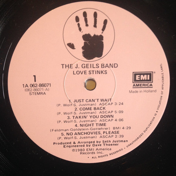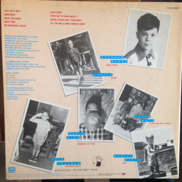 A1. Just Can't Wait 3:24 A2. Come Back 5:09 A3. Takin' You Down 4:06 A4. Night Time 4:29 A5. No Anchovies, Please 2:39 B1. Love Stinks 3:45 B2. Tryin' Not To Think About It 6:19 B3. Desire (Please Don't Turn Away) 3:35 B4. Till The Walls Come Tumblin' Down 4:01