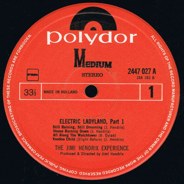 A1. Still Raining, Still Dreaming 4:24 A2. House Burning Down 4:35 A3. All Along The Watchtower 4:01 A4. Voodoo Chile (Slight Return) 5:14 B1. Rainy Day, Dream Away 3:43 B2. 1983....(A Merman I Should Turn To Be) 13:46 B3. Moon, Turn The Tides....Gently, Gently Away 8:53
