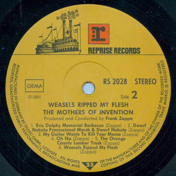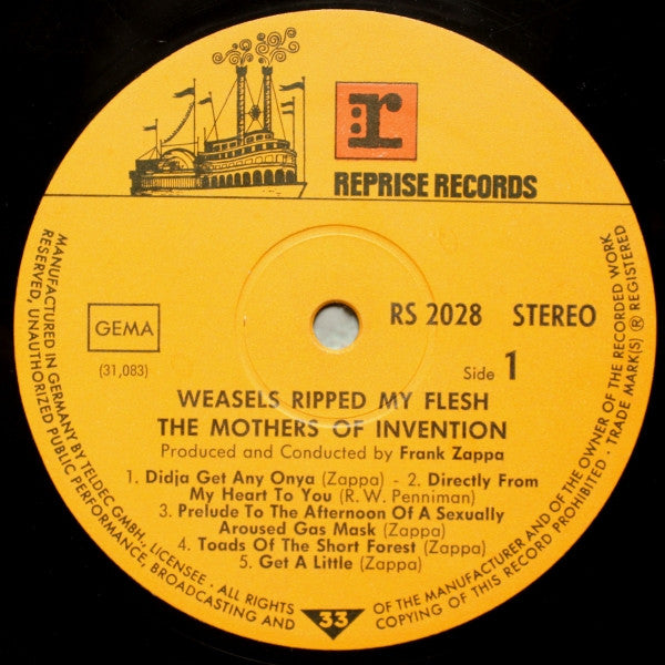 A1. Didja Get Any Onya? 3:44 A2. Directly From My Heart To You 5:17 A3. Prelude To The Afternoon Of A Sexually Aroused Gas Mask 3:35 A4. Toads Of The Short Forest 4:48 A5. Get A Little 2:35 B1. Eric Dolphy Memorial Barbecue 6:53 B2. Dwarf Nebula Processional March & Dwarf Nebula 2:12 B3. My Guitar Wants To Kill Your Mama 3:35 B4. Oh No 1:46 B5. The Orange County Lumber Truck 3:18 B6. Weasels Ripped My Flesh 2:05