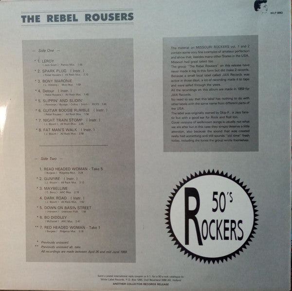A1. Leroy 1:55 A2. Spark Plug 2:10 A3. Bony Maronie 1:59 A4. Detour 1:45 A5. Slippin' & Slidin' 1:46 A6. Guitar Boogie Rumble 1:50 A7. Night Train Stomp 2:55 A8. Fat Man's Walk 2:58 B1. Red Headed Woman (Take 5) 2:24 B2. Gunfire 2:12 B3. Maybelline 2:18 B4. Dark Road 1:52 B5. Down On Basin Street 1:56 B6. Bo Diddley 2:47 B7. Red Headed Woman (Take 1) 2:18