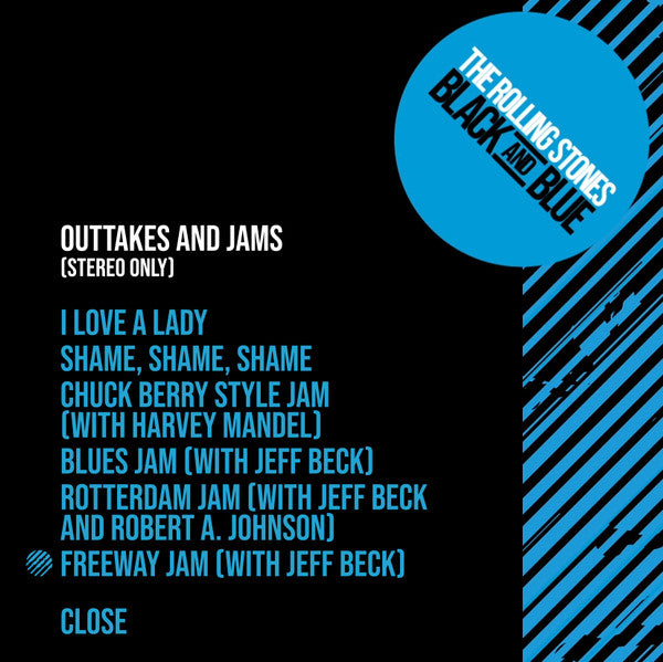 A1. Hot Stuff A2. Hand Of Fate A3. Cherry Oh Baby A4. Memory Motel B1. Hey Negrita B2. Melody B3. Fool To Cry B4. Crazy Mama . Outtakes And Jams C1. I Love A Lady C2. Shame Shame Shame C3. Chuck Berry Style Jam D1. Blues Jam D2. Rotterdam Jam D3. Freeway Jam . Earls Court Live 1976 E1. Honky Tonk Women E2. If You Can't Rock Me E3. Hand Of Fate E4. Hey Negrita F1. Ain't Too Proud To Beg F2. Fool To Cry F3. Hot Stuff F4. Star Star G1. You Gotta Move G2. You Can't Always Get What You Want G3. Happy H1. Tumbling Dice H2. Nothing From Nothing H3. Outa-Space I1. Midnight Rambler I2. It's Only Rock 'N' Roll (But I Like It) I3. Brown Sugar J1. Jumpin' Jack Flash J2. Street Fighting Man J3. Sympathy For The Devil . Blu-ray Audio . Black And Blue (Steven Wilson Remix 2025) (Atmos, 5.1, Stereo) BD-1. Hot Stuff BD-2. Hand Of Fate BD-3. Cherry Oh Baby BD-4. Memory Motel BD-5. Hey Negrita BD-6. Melody BD-7. Fool To Cry BD-8. Crazy Mama . Les Rolling Stones Aux Abattoirs, Paris-Juin 1976 (Atmos, 5.1, Stereo) (Video) BD-9. Band Intro BD-10. Honky Tonk Women BD-11. Hand Of Fate BD-12. Fool To Cry BD-13. Hot Stuff BD-14. Star Star BD-15. You Gotta Move BD-16. You Can't Always Get What You Want BD-17. Band Introductions BD-18. Happy BD-19. Outa Space BD-20. Jumpin' Jack Flash BD-21. Street Fighting Man . Earl's Court 1976 (Atmos, Stereo) BD-22. Honky Tonk Women BD-23. If You Can't Rock Me / Get Off My Cloud BD-24. Hand Of Fate BD-25. Hey Negrita BD-26. Ain't Too Proud To Beg BD-27. Fool To Cry BD-28. Hot Stuff BD-29. Star Star BD-30. You Gotta Move BD-31. You Can't Always Get What You Want BD-32. Band Intro BD-33. Happy BD-34. Tumbling Dice BD-36. Nothing From Nothing BD-37. Outa-Space BD-38. Midnight Rambler BD-39. It's Only Rock 'N' Roll (But I Like It) BD-40. Brown Sugar BD-41. Jumpin' Jack Flash BD-42. Street Fighting Man BD-43. Sympathy For The Devil . Outtakes And Jams (Stereo Only) BD-47. I Love A Lady BD-48. Shame, Shame, Shame BD-49. Chuck Berry Style Jam BD-50. Blues Jam BD-51. Rotterdam Jam BD-52. Freeway Jam