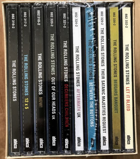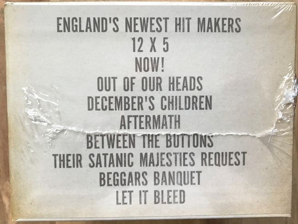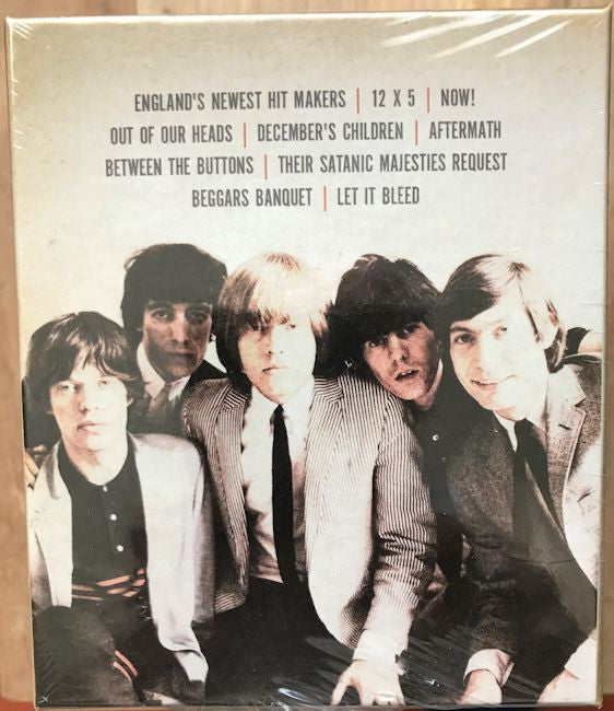 . England's Newest Hitmakers 1-1. Not Fade Away 1-2. Route 66 1-3. I Just Want To Make Love To You 1-4. Honest I Do 1-5. Now I’ve Got A Witness 1-6. Little By Little 1-7. I’m A King Bee 1-8. Carol 1-9. Tell Me 1-10. Can I Get A Witness 1-11. You Can Make It If You Try 1-12. Walking The Dog . 12 X 5 2-1. Around And Around 2-2. Confessin’ The Blues 2-3. Empty Heart 2-4. Time Is On My Side 2-5. Good Times, Bad Times 2-6. It’s All Over Now 2-7. 2120 South Michigan Avenue 2-8. Under The Boardwalk 2-9. Congradulations 2-10. Grown Up Wrong 2-11. If You Need Me 2-12. Susie Q . Now! 3-1. Everybody Needs Somebody To Love 3-2. Down Home Girl 3-3. You Can’t Catch Me 3-4. Heart Of Stone 3-5. What A Shame 3-6. Mona (I Need You Baby) 3-7. Down The Road Apiece 3-8. Off The Hook 3-9. Pain In My Heart 3-10. Oh Baby (We Got A Good Thing Goin’) 3-11. Little Red Rooster 3-12. Surprise, Surprise . Out Of Our Heads 4-1. She Said Yeah 4-2. Mercy Mercy 4-3. Hitch Hike 4-4. That's How Strong My Love Is 4-5. Good Times 4-6. Gotta Get Away 4-7. Talkin' 'Bout You 4-8. Cry To Me 4-9. Oh Baby 10. Heart Of Stone 4-11. The Under Assistant West Coast Promotion Man 4-12. I'm Free . December's Children (And Everybody's) 5-1. She Said Yeah 5-2. Talkin' About You 5-3. You Better Move On 5-4. Look What You've Done 5-5. The Singer Not The Song 5-6. Route 66 5-7. Get Off Of My Cloud 5-8. I'm Free 5-9. As Tears Go By 5-10. Gotta Get Away 5-11. Blue Turns To Grey 5-12. I'm Moving On . Aftermath [UK] 6-1. Mother’s Little Helper 6-2. Stupid Girl 6-3. Lady Jane 6-4. Under My Thumb 6-5. Doncha Bother Me 6-6. Going Home 6-7. Flight 505 6-8. High And Dry 6-9. Out Of Time 6-10. It’s Not Easy 6-11. I Am Waiting 6-12. Take It Or Leave It 6-13. Think 6-14. What To Do . Between The Buttons [UK] 7-1. Yesterday’s Papers 7-2. My Obsession 7-3. Back Street Girl 7-4. Connection 7-5. She Smiled Sweetly 7-6. Cool, Calm & Collected 7-7. All Sold Out 7-8. Please Go Home 7-9. Who’s Been Sleeping Here? 7-10. Complicated 7-11. Miss Amanda Jones 7-12. Something Happened To Me Yesterday . Their Satanic Majesties Request 8-1. Sing This All Together 8-2. Citadel 8-3. In Another Land 8-4. 2000 Man 8-5. Sing This All Together (See What Happens) 8-6. She’s A Rainbow 8-7. The Lantern 8-8. Gomper 8-9. 2000 Light Years From Home 8-10. On With The Show . Beggars Banquet 9-1. Sympathy For The Devil 9-2. No Expectations 9-3. Dear Doctor 9-4. Parachute Woman 9-5. Jigsaw Puzzle 9-6. Street Fighting Man 9-7. Prodigal Son 9-8. Stray Cat Blues 9-9. Factory Girl 9-10. Salt Of The Earth . Let It Bleed 10-1. Let It Bleed 10-2. Love In Vain 10-3. Midnight Rambler 10-4. Gimme Shelter 10-5. You Got The Silver 10-6. You Can’t Always Get What You Want 10-7. Live With Me 10-8. Monkey Man 10-9. Country Honk