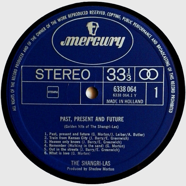 A1. Past, Present And Future 2:40 A2. Train From Kansas City 3:20 A3. Heaven Only Knows 2:10 A4. Remember (Walking In The Sand) 2:17 A5. Out In The Streets 2:47 A6. What Is Love 2:25 B1. Leader Of The Pack 2:53 B2. I Can Never Go Home Anymore 3:13 B3. Give Him A Great Big Kiss 2:10 B4. Long Live Our Love 2:54 B5. Give Us Your Blessings 3:15 B6. Sophisticated Boom Boom 2:08