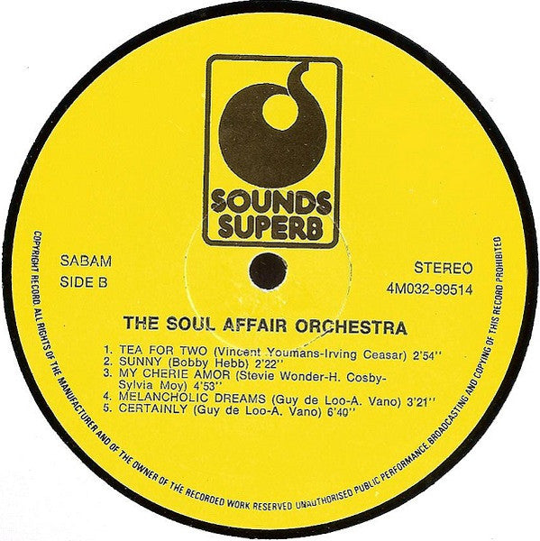 A1. Amor 4:50 A2. Begin The Beguine 4:07 A3. Only You 4:20 A4. O Sole Mio 3:35 A5. Strangers In The Night 3:35 B1. Tea For Two 2:54 B2. Sunny 2:22 B3. My Cherie Amor 4:53 B4. Melancholic Dreams 3:21 B5. Certainly 6:40