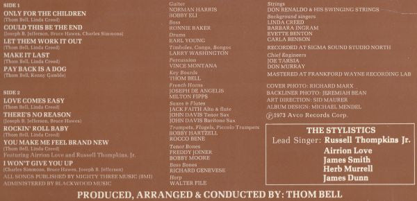 A1. Only For The Children A2. Could This Be The End A3. Let Them Work It Out A4. Make It Last A5. Pay Back Is A Dog B1. Love Comes Easy B2. There's No Reason B3. Rockin' Roll Baby B4. You Make Me Feel Brand New B5. I Won't Give You Up