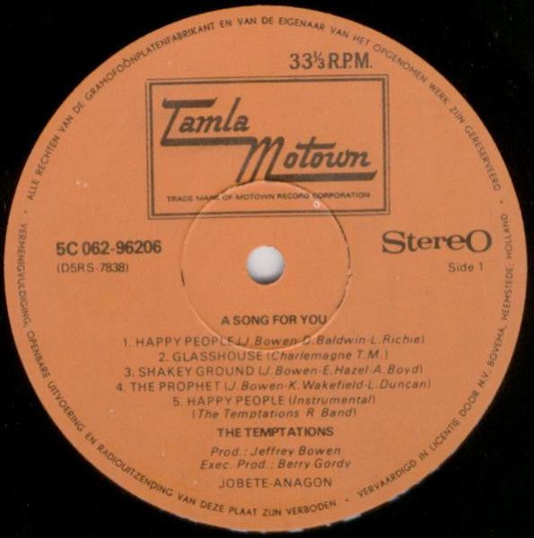 A1. Happy People 3:32 A2. Glasshouse 3:53 A3. Shakey Ground 3:58 A4. The Prophet 4:20 A5. Happy People (Instrumental) 2:52 B1. A Song For You 4:32 B2. Memories 5:53 B3. I'm A Bachelor 4:13 B4. Firefly 3:56