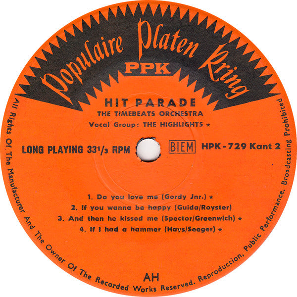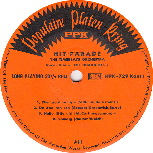 The Timebeats En De Vocal Group The Highlights - Hit Parade (7", EP)