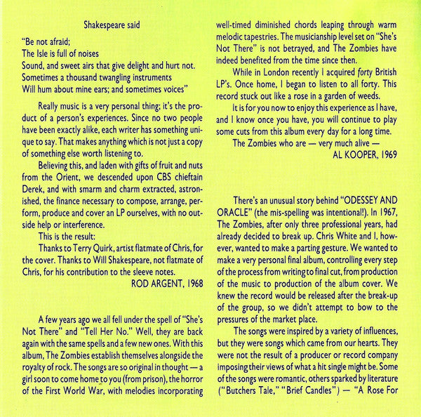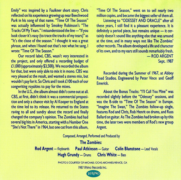 1. Care Of Cell 44 3:582. A Rose For Emily 2:173. Maybe After He's Gone 2:314. Beechwood Park 2:435. Brief Candles 3:286. Hung Up On A Dream 3:007. Changes 3:178. I Want Her She Wants Me 2:509. This Will Be Our Year 2:0610. Butchers Tale (Western Front 1914) 2:4511. Friends Of Mine 2:1612. Time Of The Season 3:3213. I'll Call You Mine 2:4214. Imagine The Swan 5:10