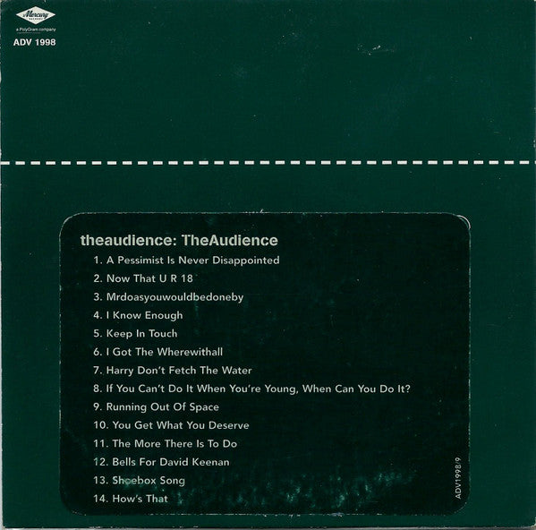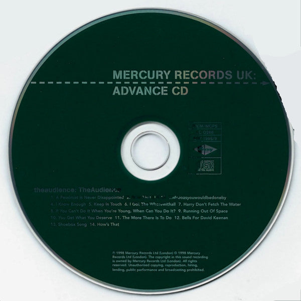 Advance CD release of theaudience. Housed in a generic Mercury card sleeve with release details on sticker attached to back cover.
