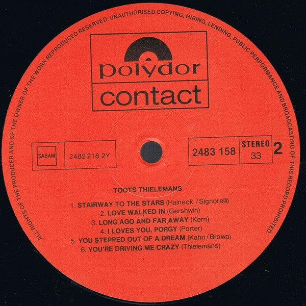 A1. Bluesette A2. There Is No Greater Love A3. Isn't It Romantic A4. Penthouse Serenade A5. A Pretty Girl Is Like A Melody A6. Stranger In Paradise B1. Stairway To The Stars B2. Love Walked In B3. Long Ago And Far Away B4. I Loves You, Porgy B5. You Stepped Out Of A Dream B6. You're Driving Me Crazy