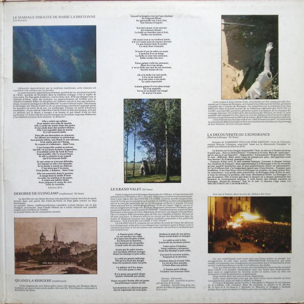 A1. Princes Qu'en Mains Tenez 3:15 A2. Complainte Gallaise 3:00 A3. La Botte D'asperges 3:18 A4. Kiss The Children For Me Mary 3:40 A5. La Jument De Michao 3:40 A6. Mrs. Mac Dermott 4:00 B1. Galvadeg En Tri Kant Mil Soudard 4:55 B2. Le Mariage Insolite De Marie La Bretonne 3:20 B3. Dérobée De Guingamp 3:24 B4. Quand La Bergère 3:23 B5. Le Grand Valet 2:50 B6. La Découverte Ou L'ignorance 3:20