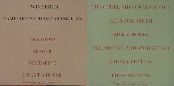 A1. The Other Side Of Your Face 7:01 A2. Lady Daydream 3:20 A3. Milk & Honey 4:54 B1. All Around And Away We Go 4:34 B2. Galaxy Plateau 6:07 B3. Phenomenons 3:24 B4. (no audio) 1:03 B5. #6 2:50 . Vampires With Dreaming Kids C1. Dry Hump 3:53 C2. Ginger 3:59 C3. Nectarine 3:10 C4. I Want A House 4:27 D1. Dry Hump 3:53 D2. Ginger 3:59 D3. Nectarine 3:10 D4. I Want A House 4:27