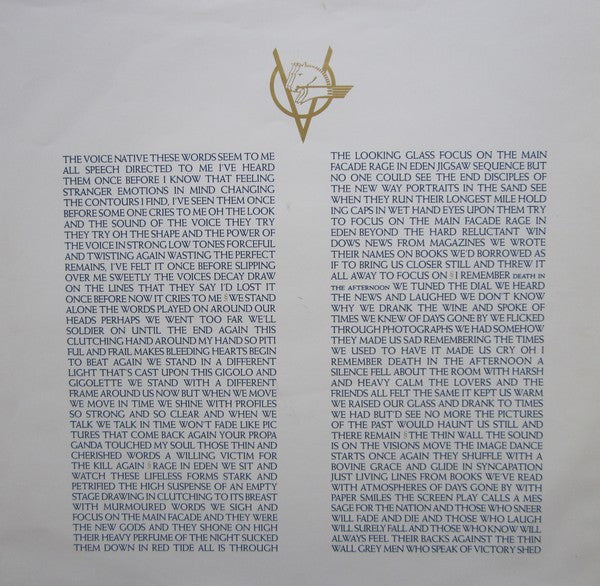 A1. The Voice 6:00 A2. We Stand Alone 5:37 A3. Rage In Eden 4:11 A4. I Remember (Death In The Afternoon) 4:56 B1. The Thin Wall 5:38 B2. Stranger Within 7:26 B3. Accent On Youth 5:57 B4. The Ascent 1:10 B5. Your Name (Has Slipped My Mind Again) 4:28