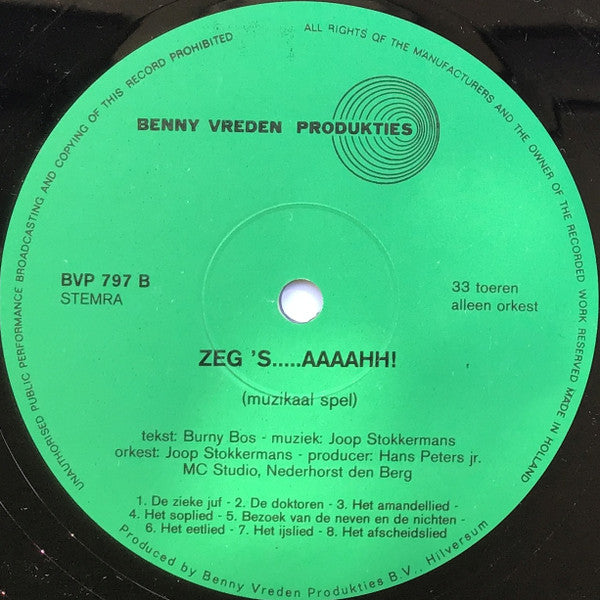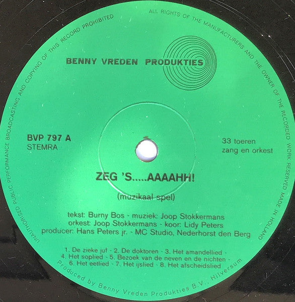 A1. De Zieke Juf A2. De Doktoren A3. Het Amandellied A4. Het Soplied A5. Bezoek Van De Neven En De Nichten A6. Het Eetlied A7. Het IJslied A8. Het Afscheidslied . Alleen Orkest B1. De Zieke Juf B2. De Doktoren B3. Het Amandellied B4. Het Soplied B5. Bezoek Van De Neven En De Nichten B6. Het Eetlied B7. Het IJslied B8. Het Afscheidslied